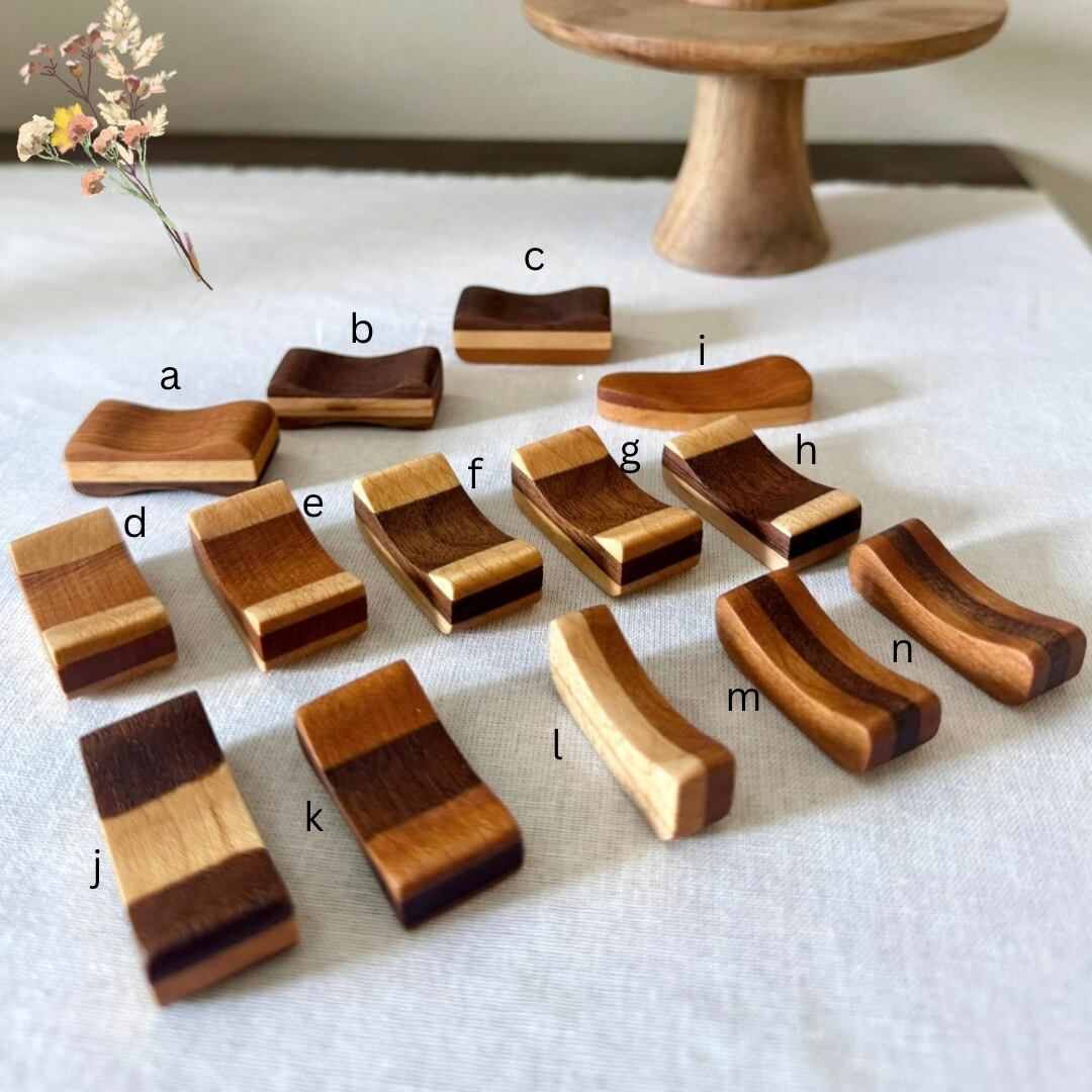 ●美しい寄木仕様 一つ一つ異なる色合いの木が組み合わさった寄木の箸置きは、独自の美しさを持っています。 お料理やお菓子に合わせて使うことで、さらにお食事の時間を特別なものにしてくれます。